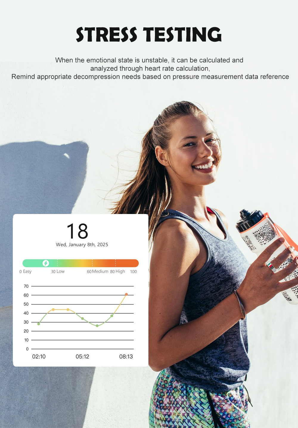 In the field of health monitoring, our smart watches have powerful functions, such as body temperature monitoring, blood pressure monitoring, blood oxygen detection, ECG detection, sleep monitoring, etc.;