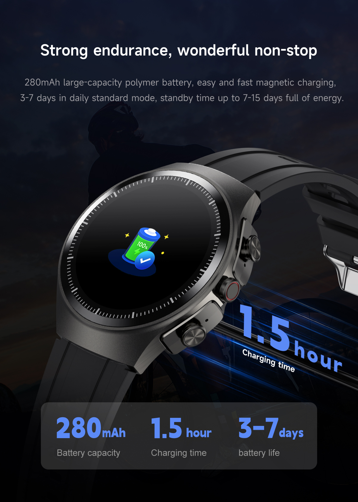Battery:280mA Li-Po battery (magnetic charging, 1.5-hour charge, 30-day standby);