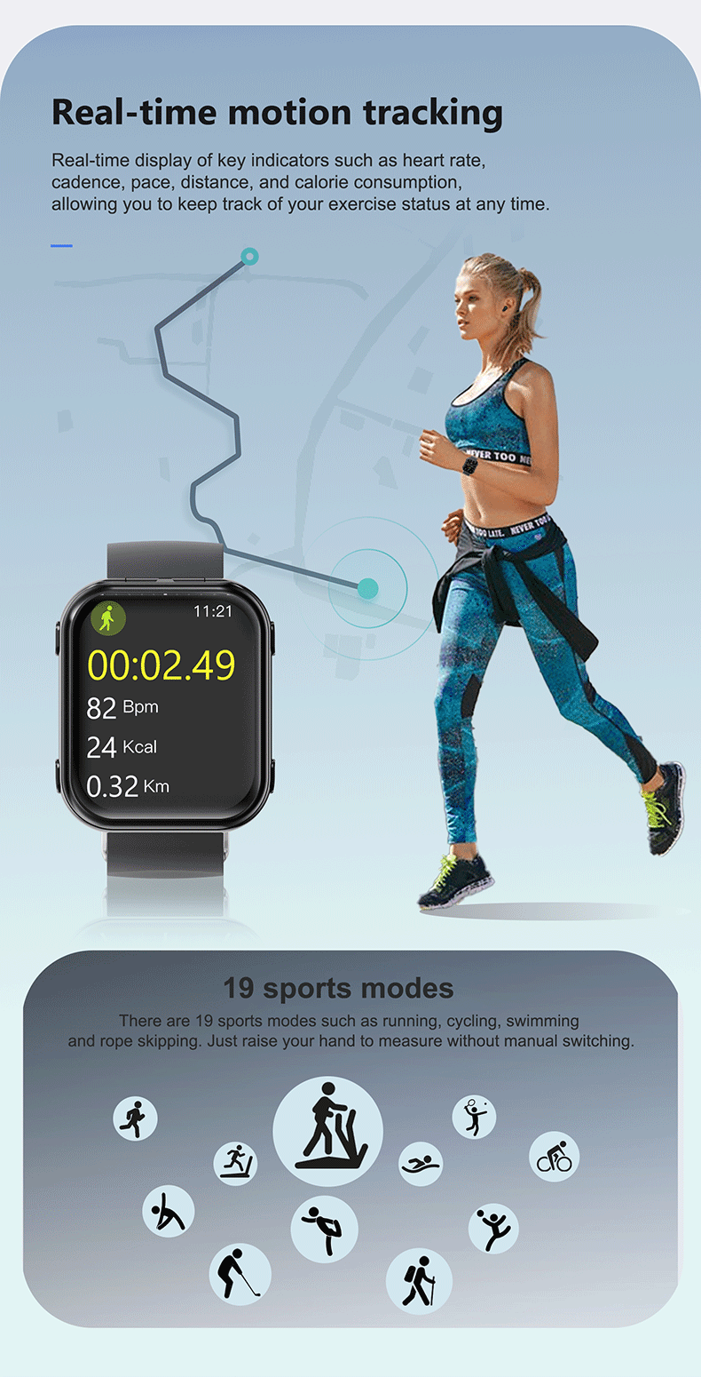 In the field of health monitoring, our smart watches have powerful functions, such as body temperature monitoring, blood pressure monitoring, blood oxygen detection, ECG detection, sleep monitoring, etc.;