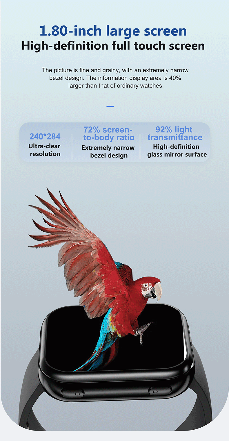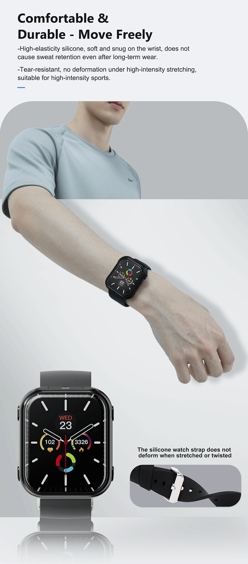 According to the quality needs of different customers, we have silicone straps, steel straps and Milanese straps for your option; There are also click screentouch, full circle / square screentouch, square screentouch, racket screentouch options on the watch dial display;