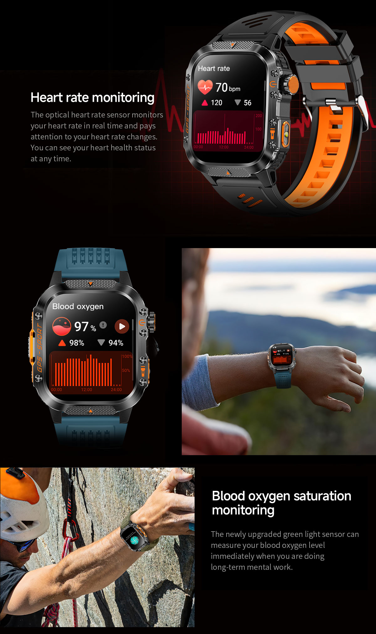 In the field of sports monitoring, our smart watch is your best sports companion. It has got outdoor sports watches, waterproof functions, step counting & distance & calories, GPS motion motion track , and special sports functions such as air pressure, altitude, SOS call, etc. ;