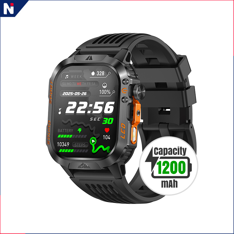 Smartwatch with high-capacity battery and LED flashlight